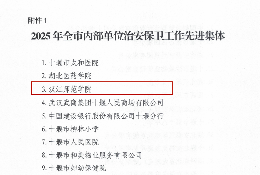近日,十堰市公安局印发通报,我校被授予“2025年度全市内部单位治安保卫工作先进集体”荣誉称号,这是对学校保卫处全面构建校园安全防控体系工作成效的高度认可。